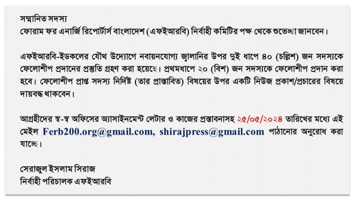 Special correspondent barta24.com. Executive Director of Forum for Energy Reporters Bangladesh, since February 2024.